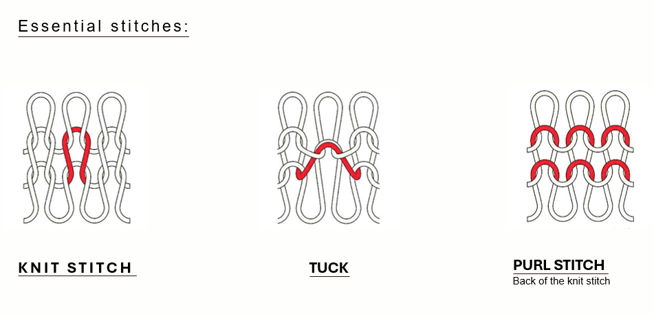 SECTION 2kNITTING TECHNIQUESDefining a stitchEssential stitchesStructures on single and double bedFinishing techniquesGarment knittingOperational range of knittingBasics of machine knittingGauges and tensionKnitting faults < Defining a stitch Overview Structures on single and double bed>