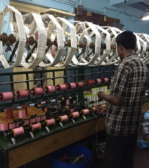 The reels are turned into yarn by winding them together.