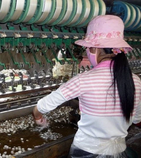 Each thread is unwound from the cocoon in individual long threads, which are then wound on a reel.