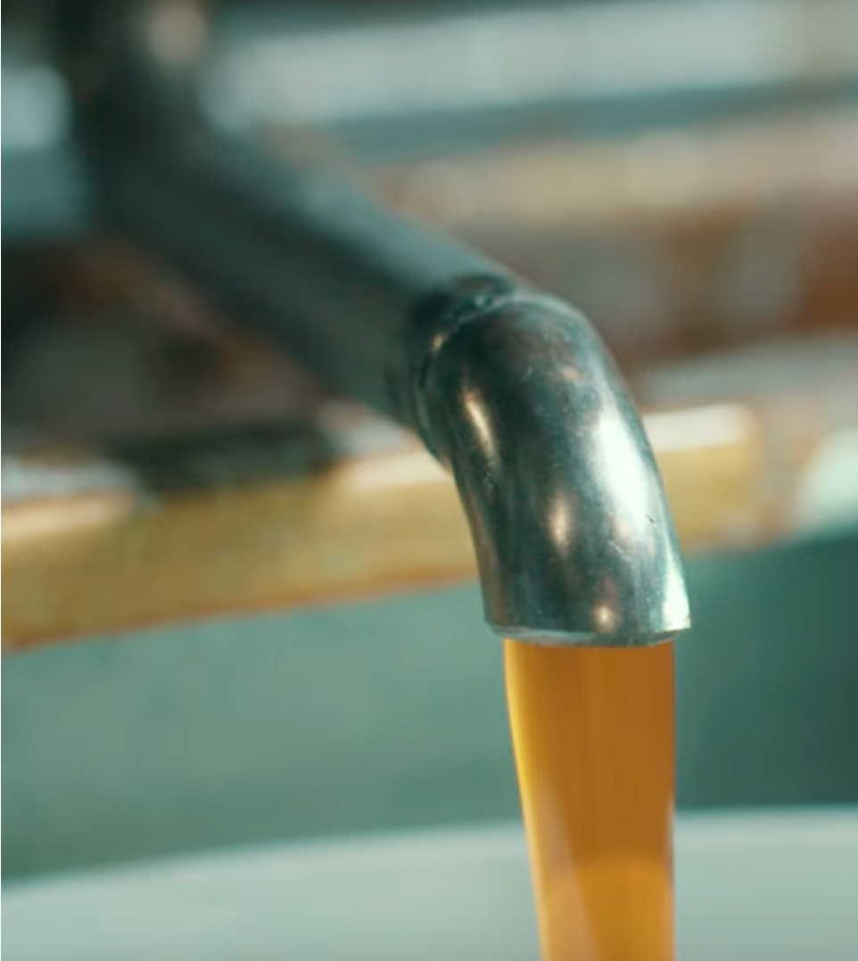 The solution passes through filters to remove any other impurities.