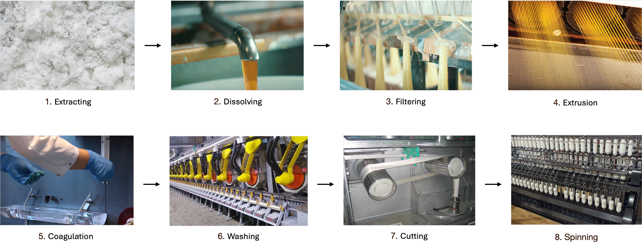 The extracted cellulose is dissolved in carbon disulfide to produce a viscous solution known as viscose.