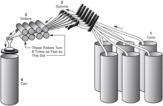 Straightening out the fibres bring multiple slivers together to make one