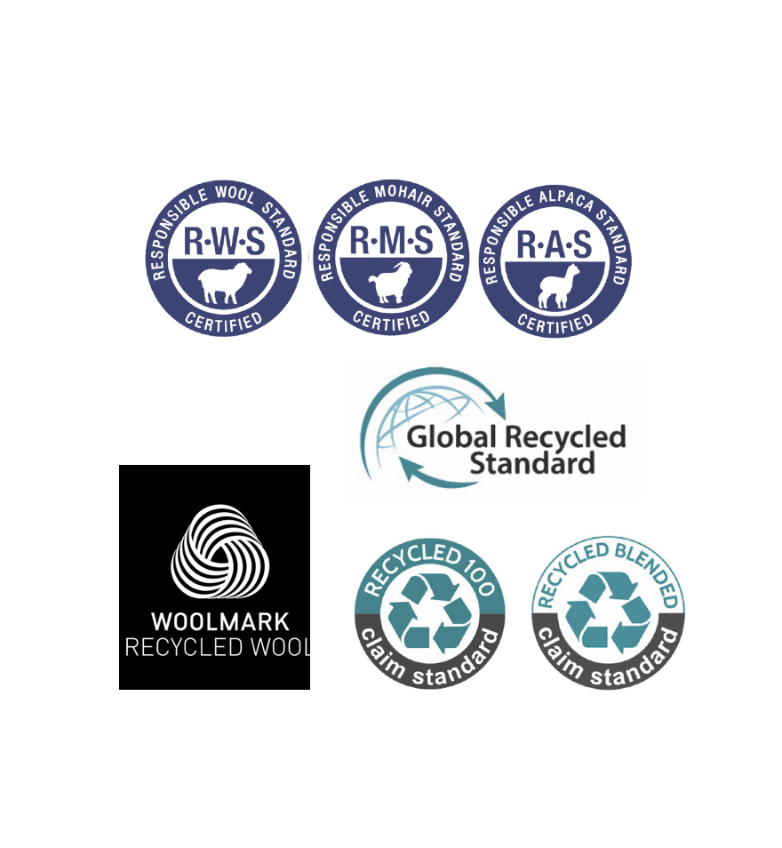 • Recycled material: Woolmark recycled wool, GRS, Recycled claim standard