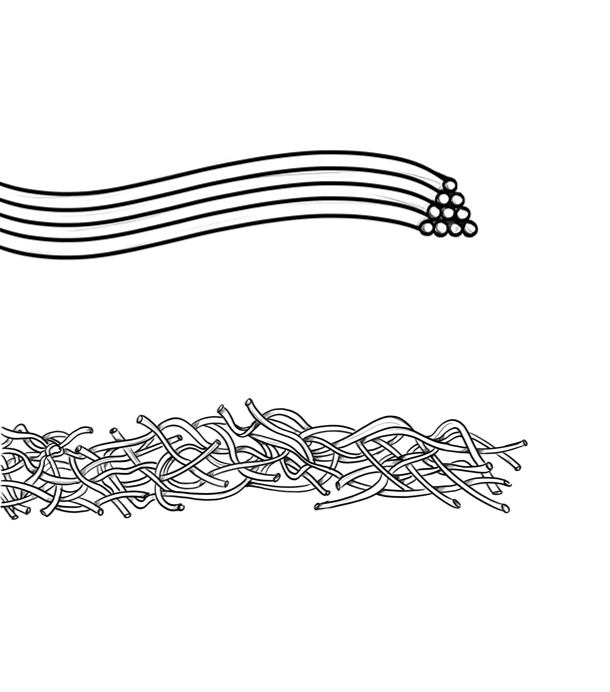• A solution is poured through a spinneret; in the case of silk, strands are twisted together to form yarn